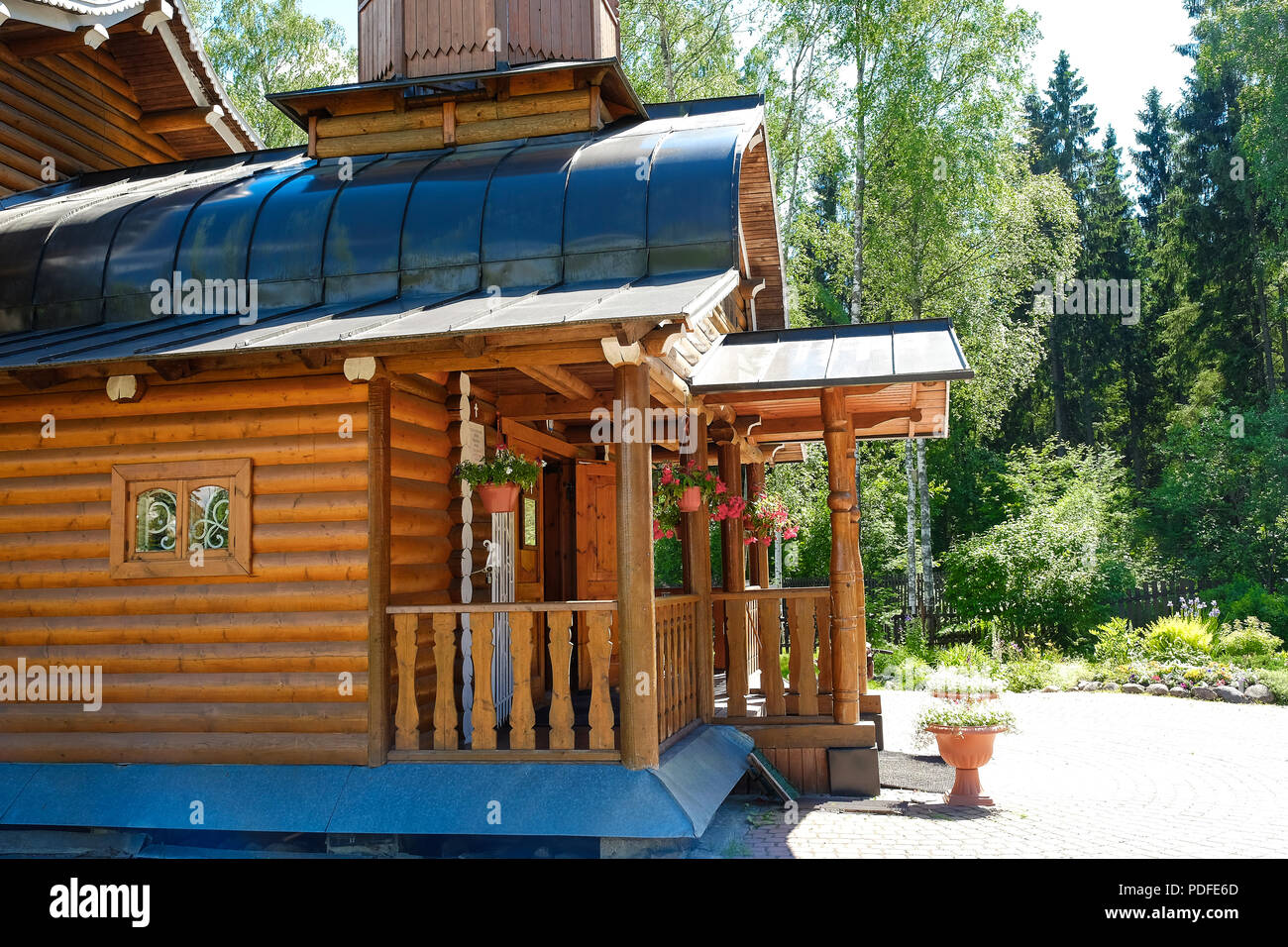 Casa de madera laminada. Se forma con piezas de madera que se unen con un adhesivo de tal manera que las fibras de la madera quedan paralelas al eje de la viga o pieza. La madera laminada encolada viga laminada son secciones horizontales de madera encoladas entre si destinadas a estructuras de carga. Apropiada para construcciones ligeras como casetas de jardin casas de verano etc.