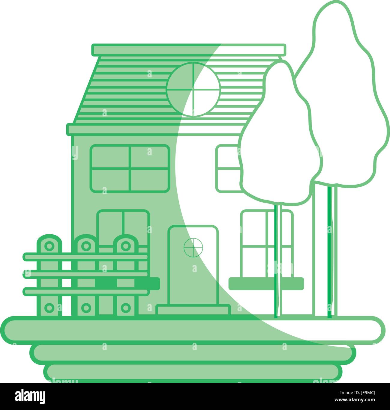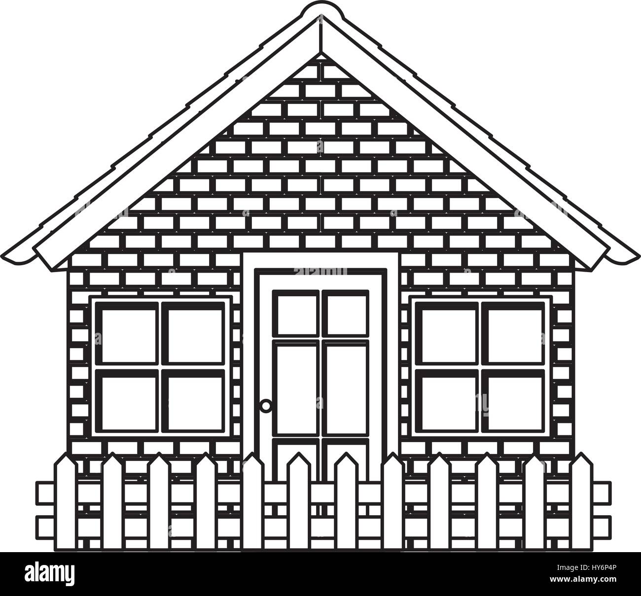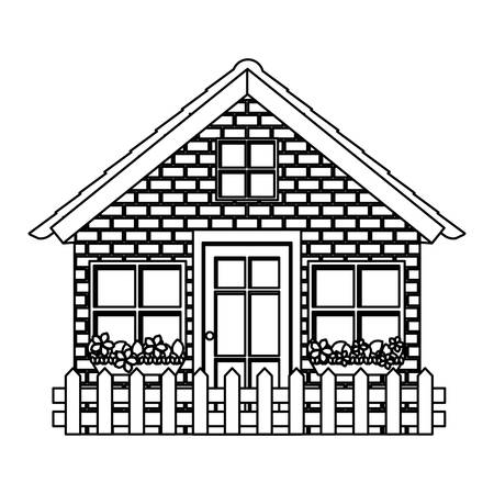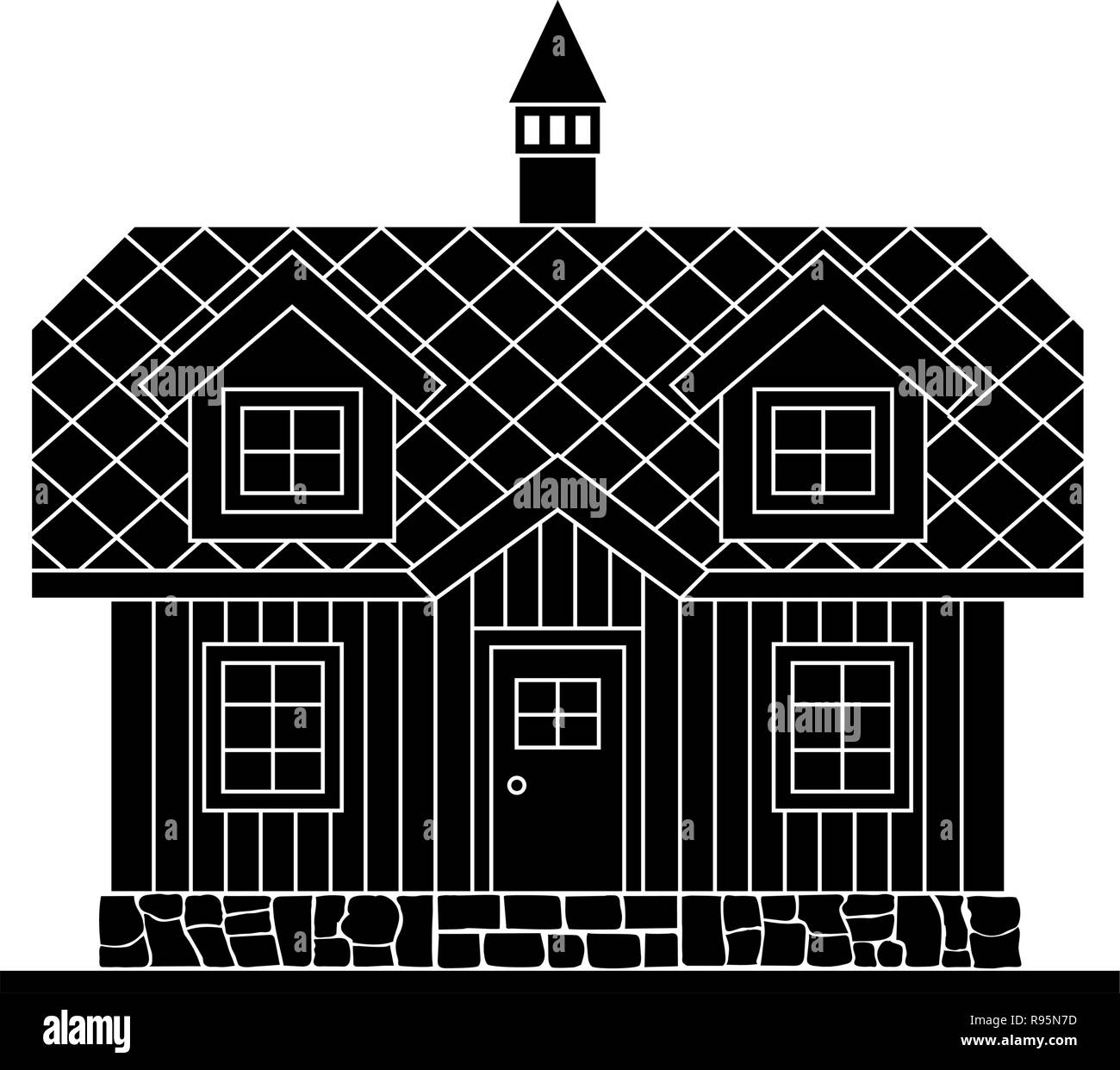 Silueta Preciosa Casa De Madera Con Rejilla Ilustracion Del Vector