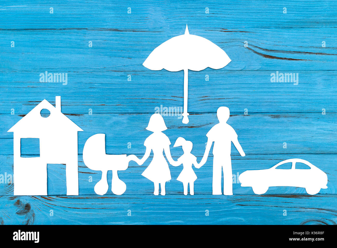 Silueta De Madera De Familia Con Casa Y Coche Foto De Stock Y Mas