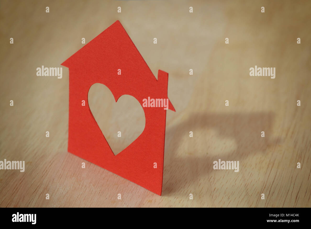 Silueta De La Casa Con La Familia Recorte En Un Mostrador De