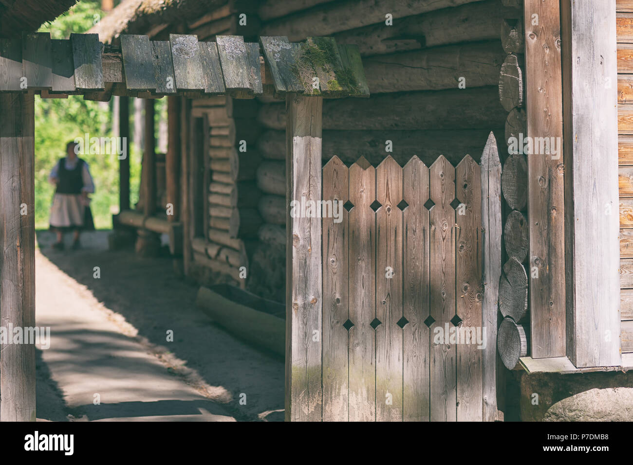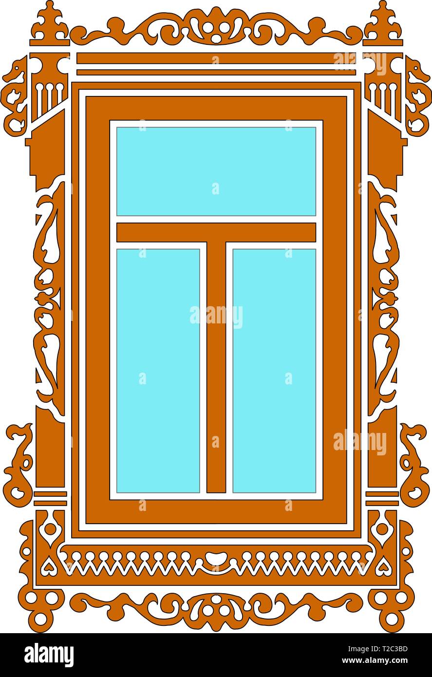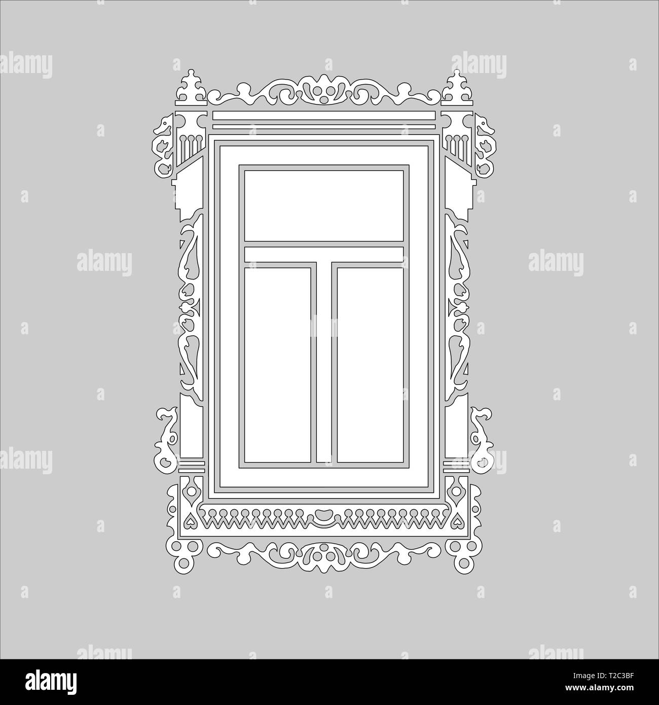 Detalle De La Antigua Casa De Madera Rusa Ventana Tallada