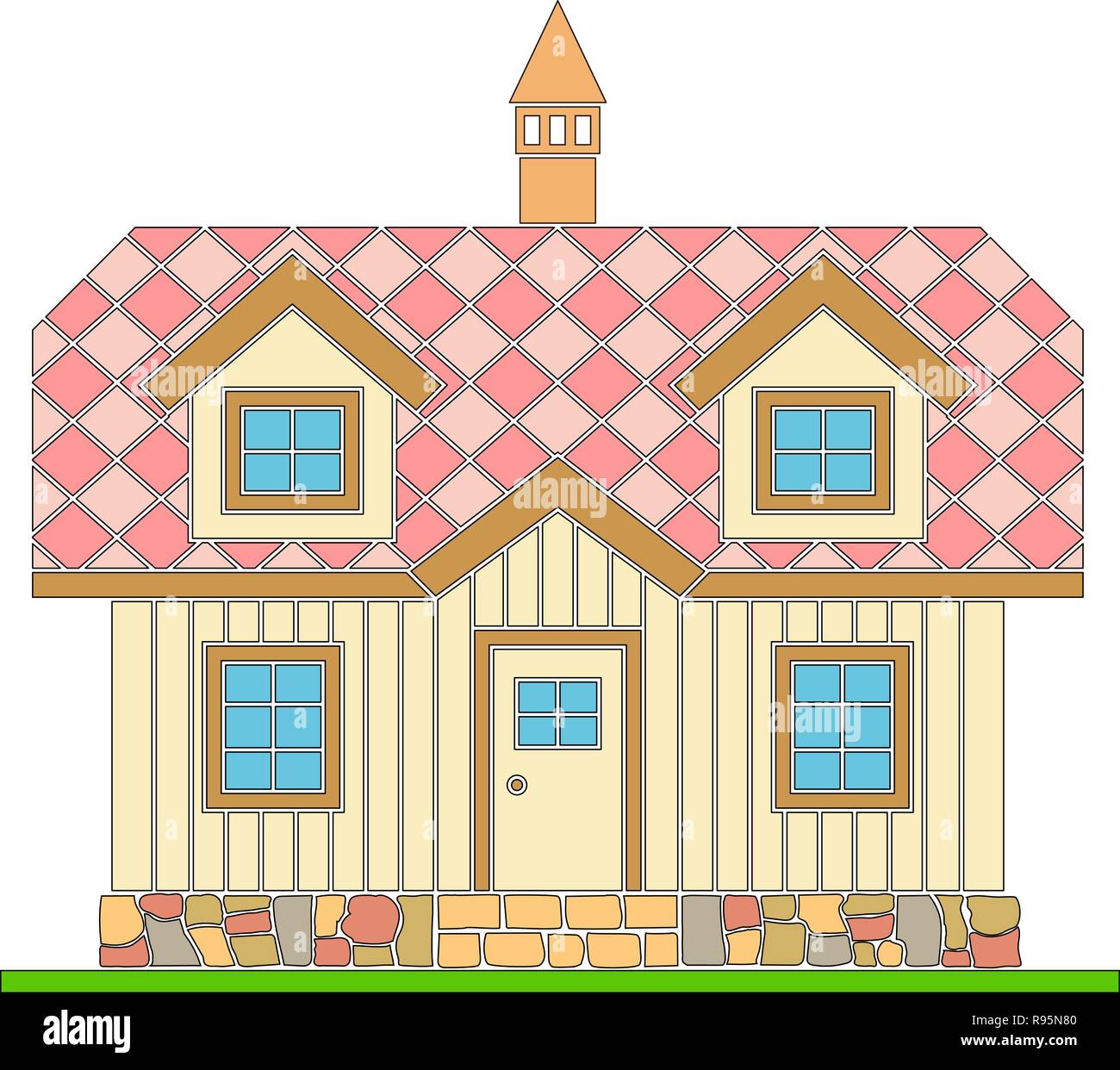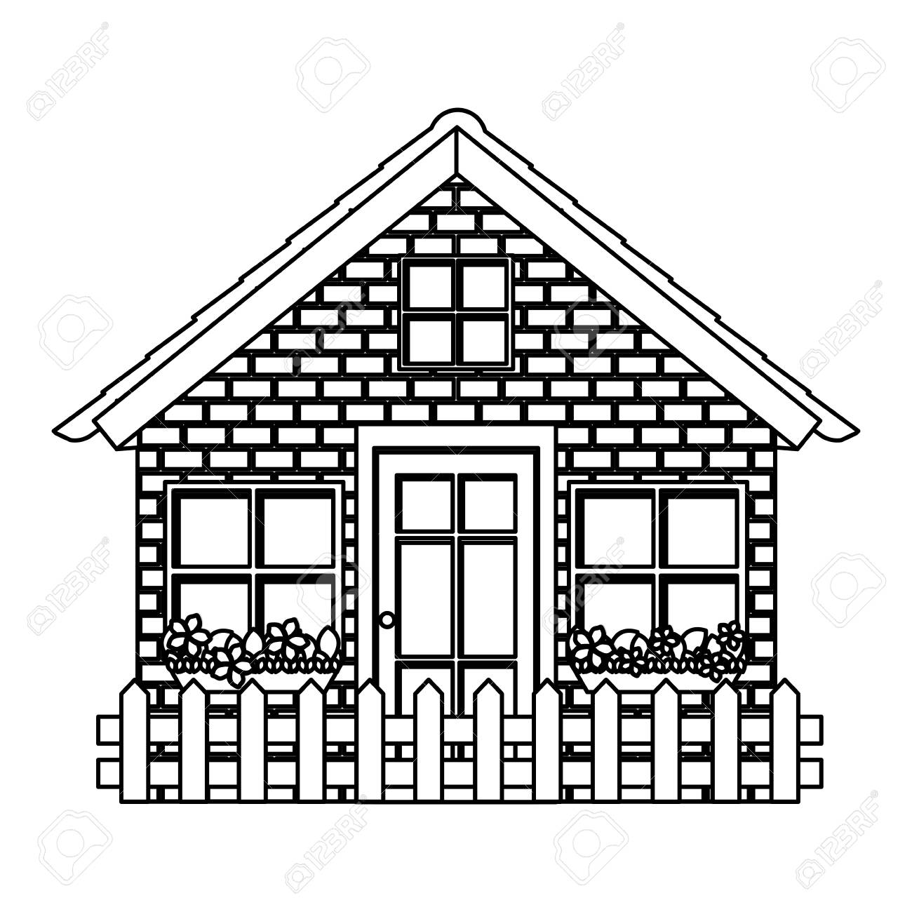 Casa De Fachada Comoda Silueta Con Ilustracion De Vector De Cerca