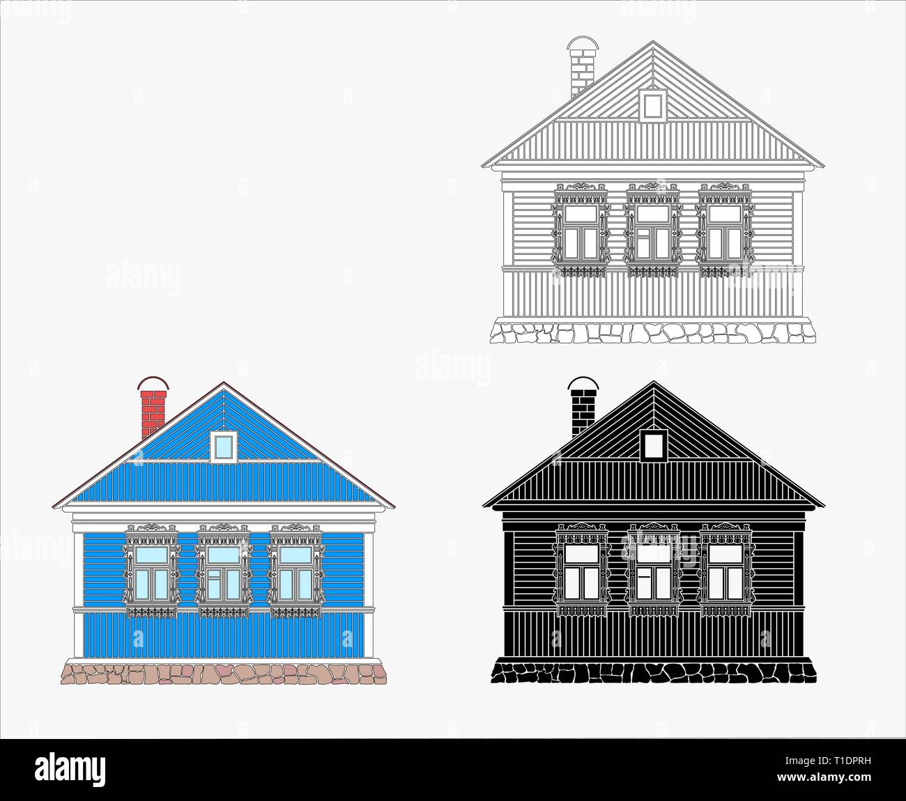 Ilustracion De Silueta Hermosa Casa De Madera De Rejilla Y Mas