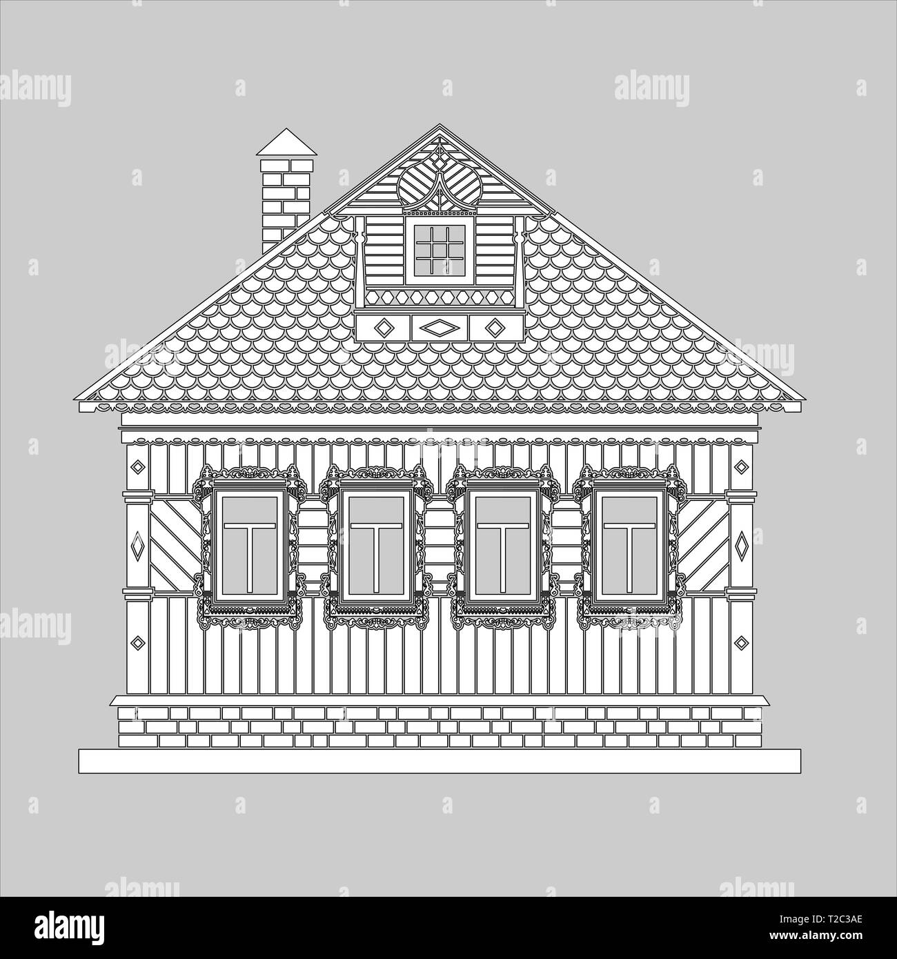 Casa De Madera Tradicional Rusa Las Ventanas Estan Decoradas Con