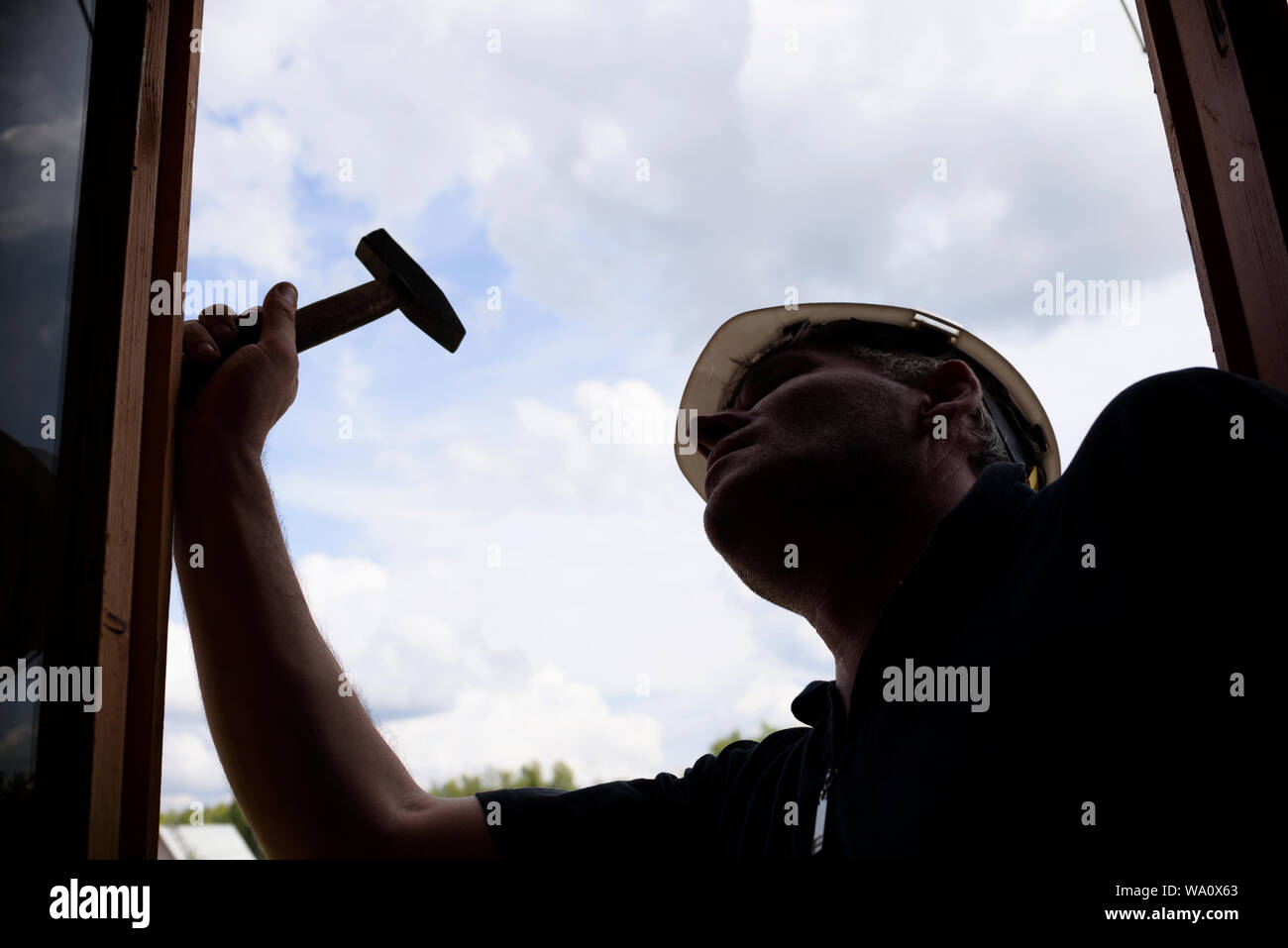 Hombre Ventana Reparaciones De Casa De Madera Silueta De La Mano
