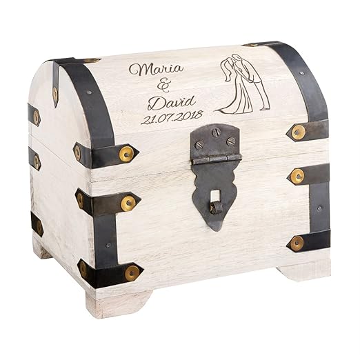 Casa Vivente Cofre De Madera Blanca Con Grabado Para Boda Motivo